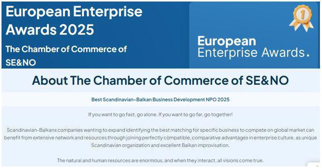 SE&NO is one of the 2025 winners of European Enterprise Awards at EU Business